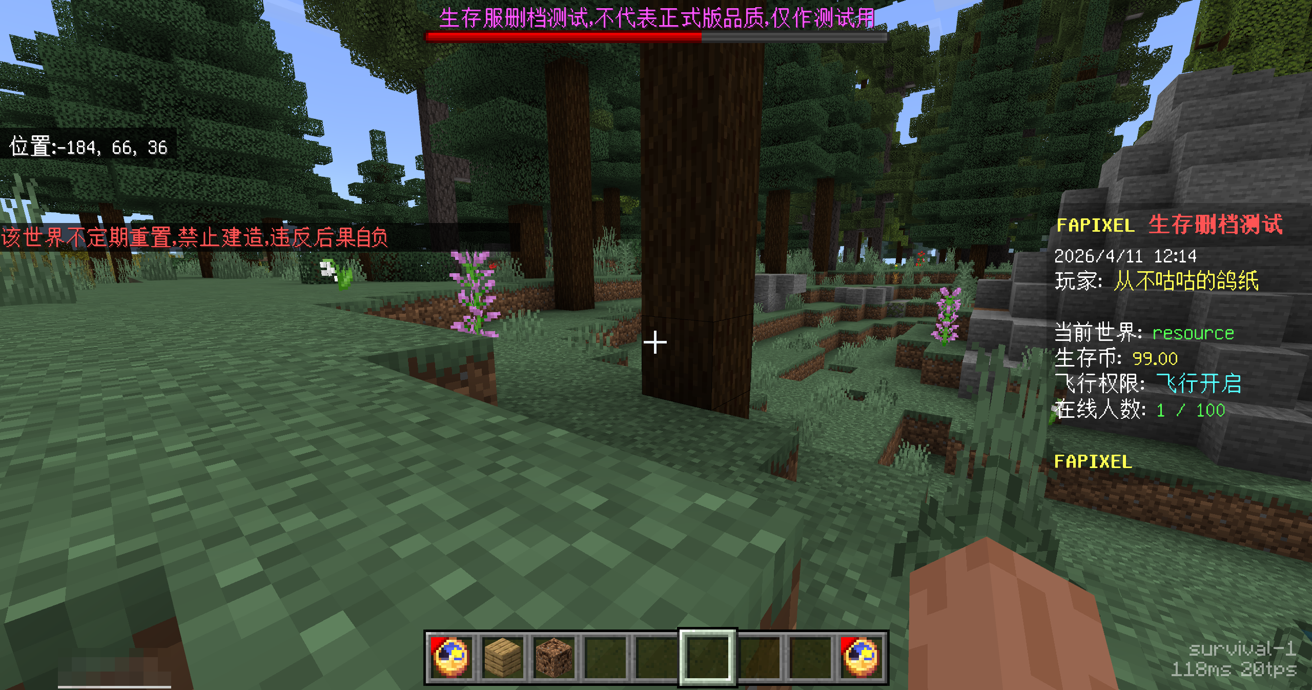 FAPIXEL生存服现已开放为期一周的删档测试!